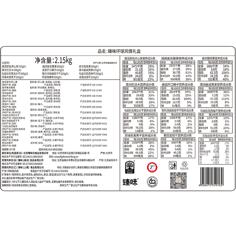 臻味纯坚果礼盒环球风情2150g每日坚果休闲零食企业团购福利