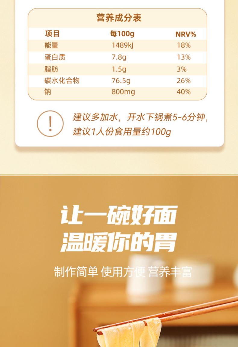 产品规格: 大宽波浪 800g*4包 选用澳洲进口小麦粉 3蒸3醒,九道压延 中高温慢速烘烤, 立体Q弹柔滑