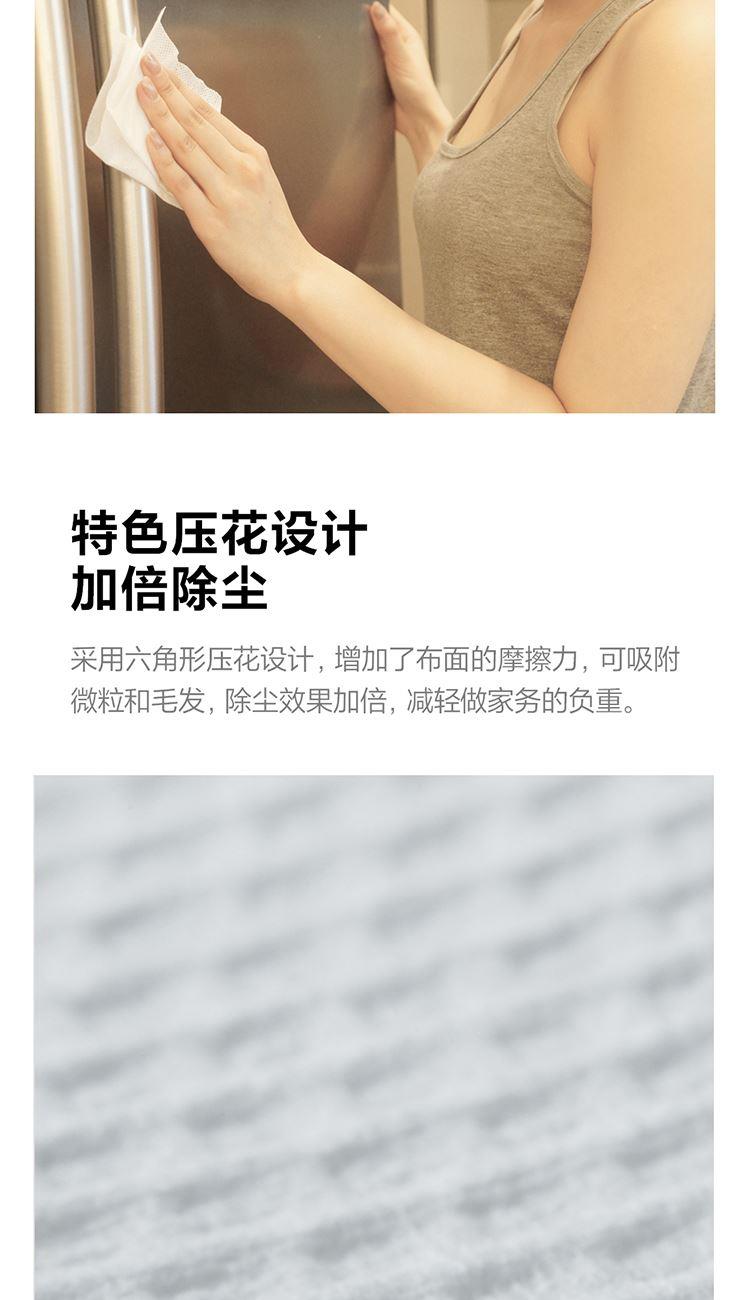 产品货号:85760 产品规格:200mm*250mm/节 主要原料:水刺无纺布 保质期:3年 产品卖点: 1、吸水吸油,干湿两用 2、柔韧不掉屑,安全洁净 3、特色压花设计,增加布面摩擦力,除尘效果加倍 多功能魔力抹布,用完即扔