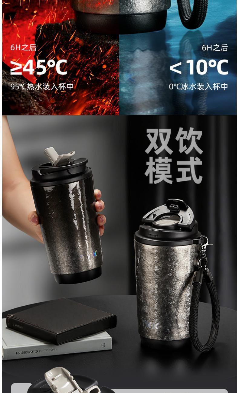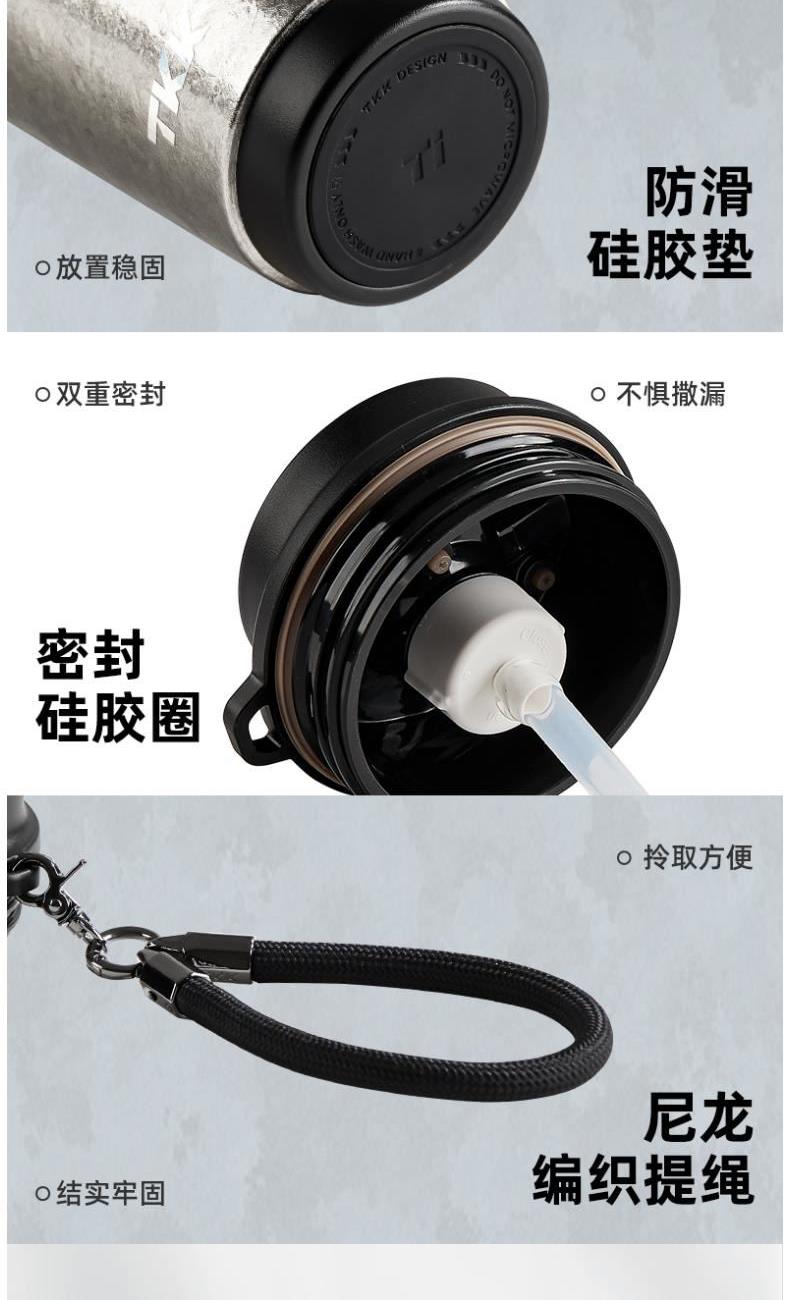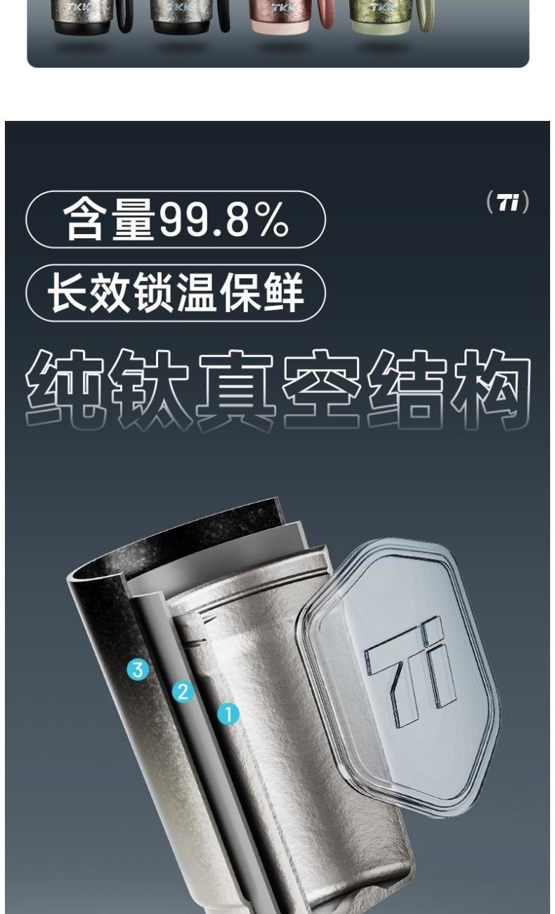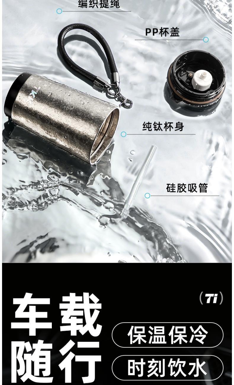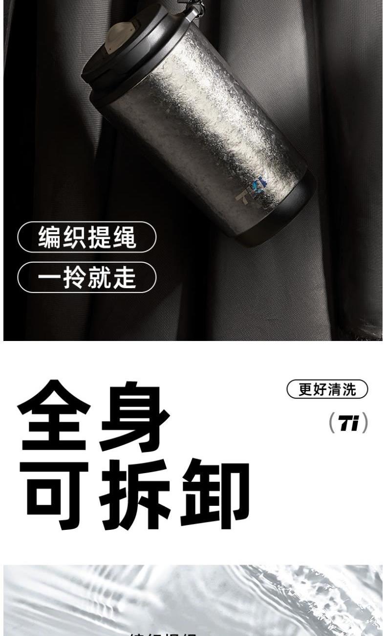 商品容量:400ml 杯身材质:钛 商品净重:270G 商品尺寸:8.5 X 16.4cm 1、内胆采用黑科技钛,无异味,耐高温,耐腐蚀;健康无味,喝水更放心,保温又保冷锁定咖饮温度 2、一盖双饮,一杯双用,三种饮用模式:直饮,吸管,敞口随意切换 3、360度密封不易漏,紧锁每一滴水,无惧翻转摇晃,安心随行 4、办公场景,活力满满忙碌又充实 5、便携车载,旅程陪伴,单手开盖更加便捷,小口饮用不易洒 5、品质做工精细,专注更好的饮水体验:如密封硅胶圈,双重密封不怕漏