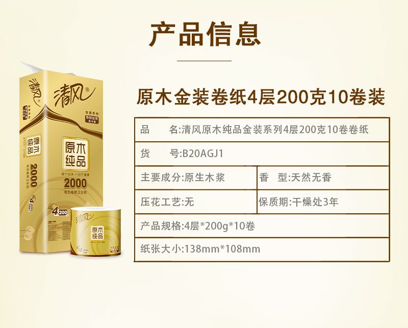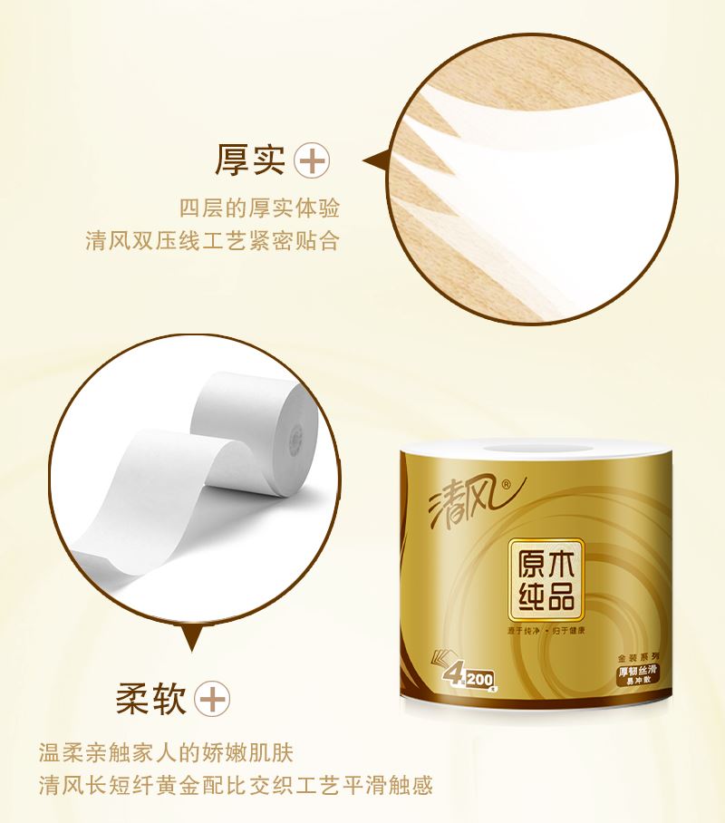 清风原木金装4层200克/卷*2提(20卷)筒卫生纸 清风原木金装4层200克/卷*2提(20卷)筒卫生纸