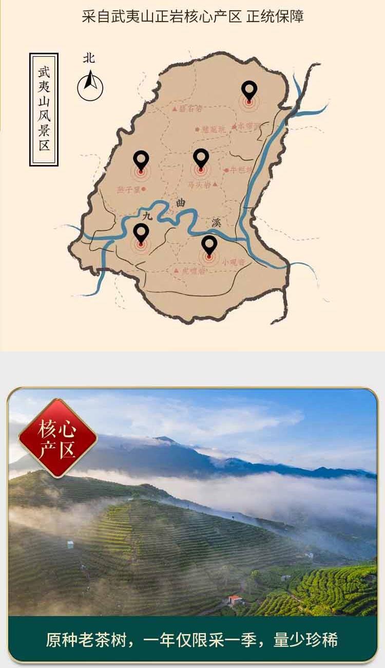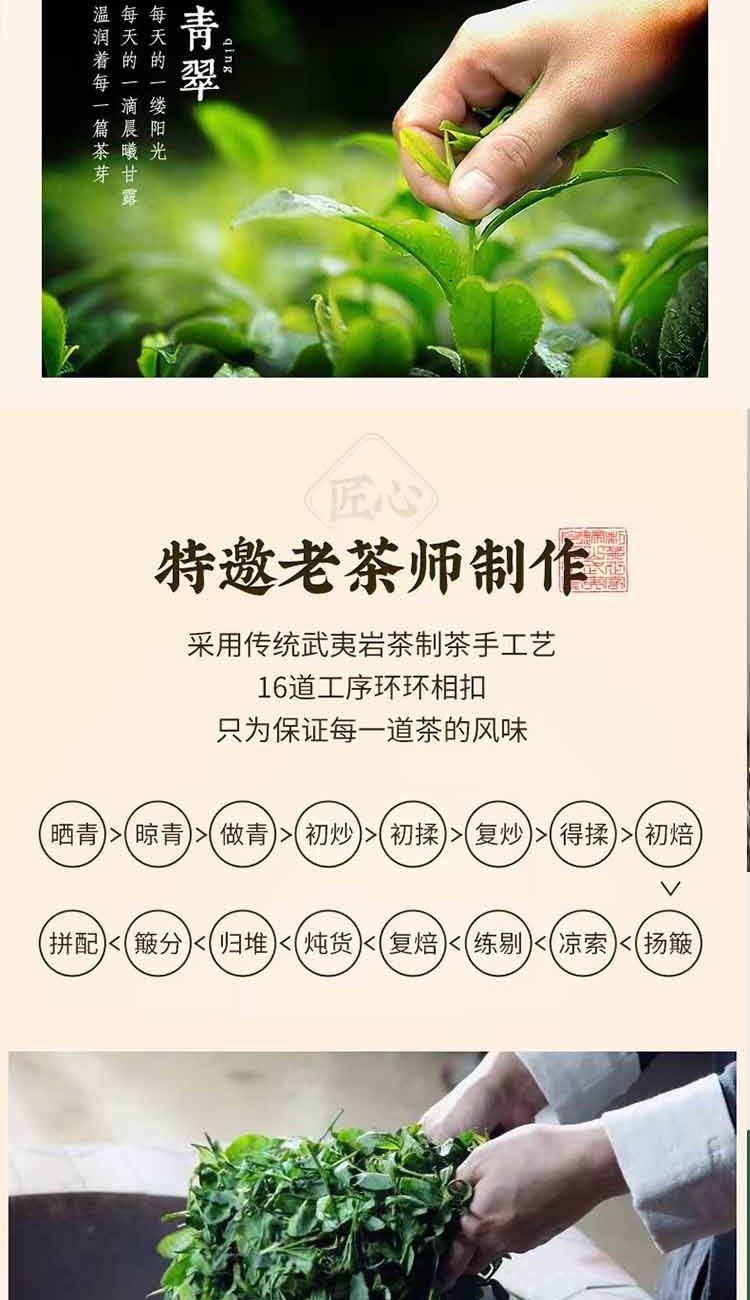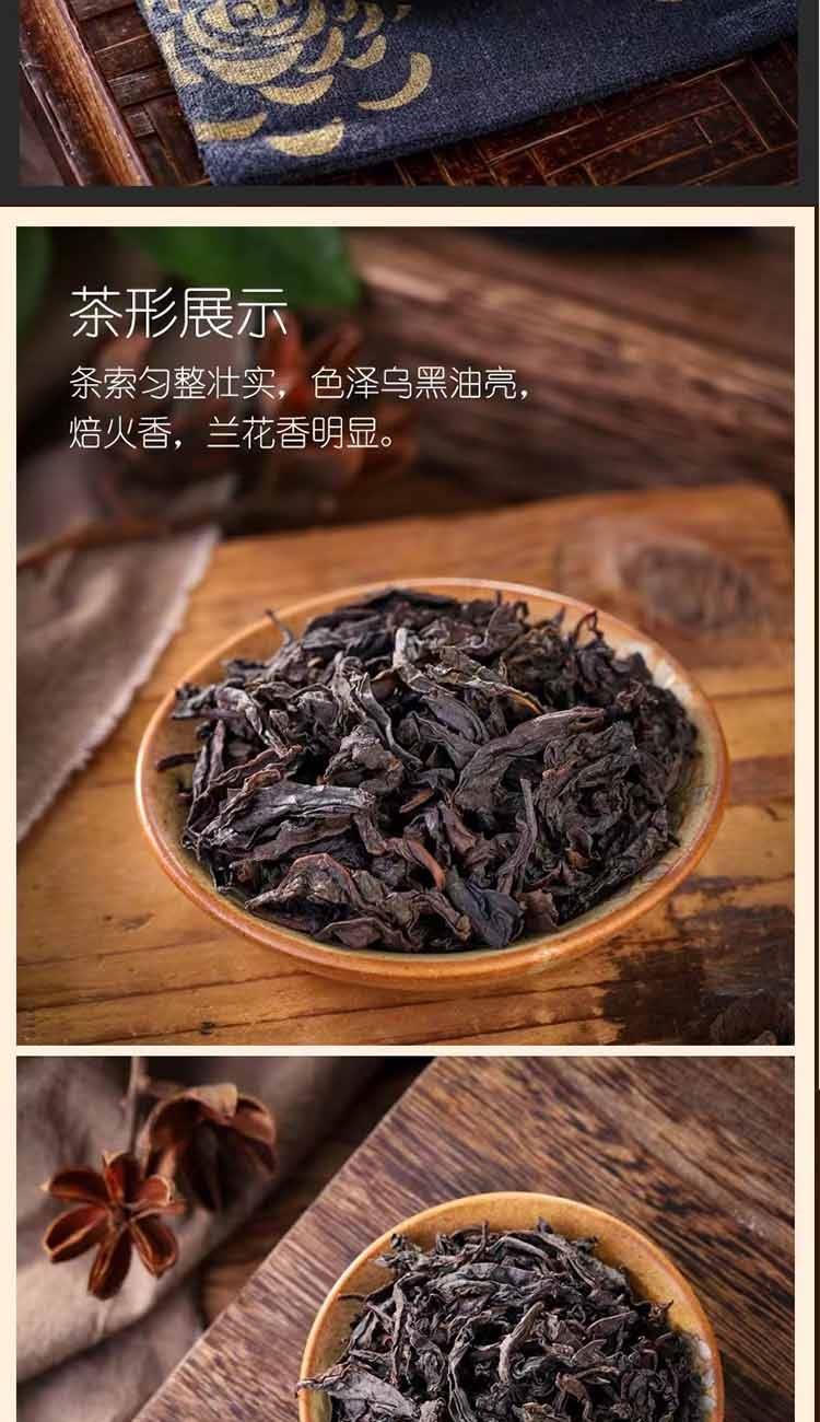 【茶名】:大红袍 【重量】:250g 【配件】:铁罐+礼盒+手提袋 【口味】:清香型 【产地】:福建·武夷山 大红袍产于福建武夷山,属于乌龙茶,其外形条索紧结,色泽绿褐鲜润,冲泡后汤色橙黄明亮,叶片红绿相间。大红袍的香气馥郁,具有兰花香,且“岩韵”明显,此外,大红袍的耐泡性极强,冲泡七、八次仍有香味。 大红袍的口感醇厚且甘甜,带有轻微的涩感,但回甘迅速,口腔留香持久,香气高扬,花香与果香交织,汤色橙黄明亮!