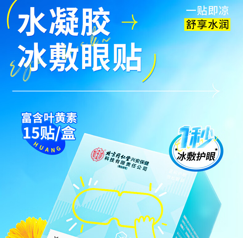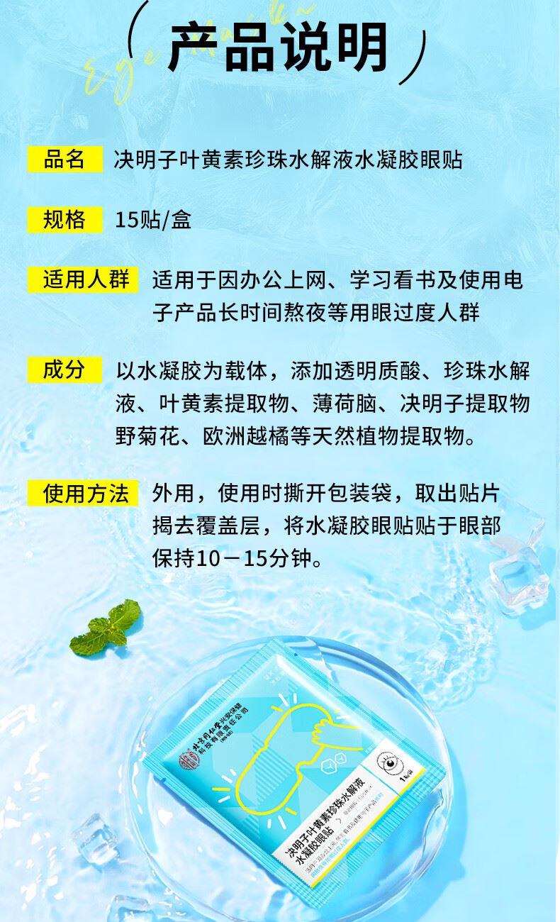 北京同仁堂决明子叶黄素珍珠水解液水凝胶眼贴1X15袋/盒