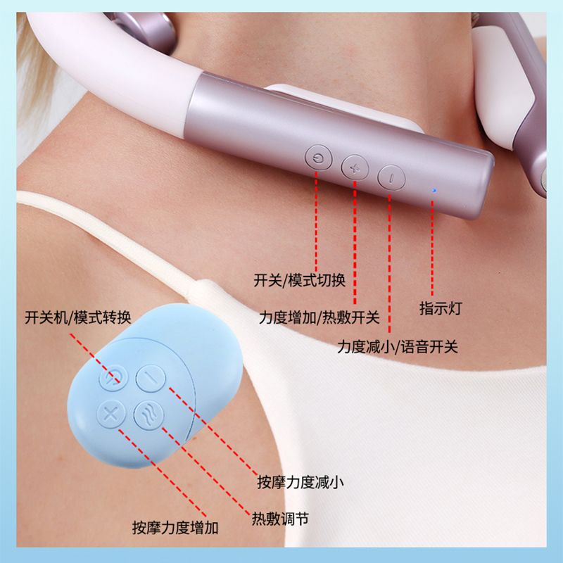 6 头立体按摩 + 360° 旋转:6 组按摩头搭配 360° 任性旋转设计,突破传统按摩局限,贴合颈椎曲线,覆盖后颈、肩周等酸痛区域,多维度模拟人手揉捏、按压,一次按摩即可缓解大面积肌肉僵硬 一键开启 42℃恒温热敷:无需复杂操作,一键启动热敷功能,暖流透过亲肤硅胶渗透颈肩,搭配脉冲、震动按摩同步作用,快速驱散肌肉寒意,秋冬使用暖颈更暖心,缓解酸痛效果翻倍 食品级软硅胶亲肤材质:按摩头与接触面均采用软硅胶材质,触感细腻亲肤,敏感肌使用无刺激,长期佩戴不闷汗、不压痕,贴合颈部时如同人手轻抚,舒适度远超普通塑料材质按摩仪 10 大模式 + 16 档力度 + 双频按摩:涵盖揉捏、捶打、脉冲等 10 大专业按摩模式,搭配 16 档细腻力度调节,再加上低 / 中双频按摩可选,无论是日常放松、运动后舒缓,还是针对性缓解颈椎不适,都能匹配需求,全家老少都能用 无线遥控 + 随心调节:配备无线遥控器,无需低头操作,躺卧、办公时随手就能切换模式、调节力度,远距离操控不耽误追剧、工作,享受按摩更自由,懒人必备便捷设计 智能芯片动态调节技术:内置高灵敏智能芯片,实时检测电极片与皮肤的贴合度,根据皮肤接触状态动态调整脉冲功率,避免高阻抗下的刺痛感,让脉冲按摩全程平稳舒适,新手也能轻松驾驭 多技术融合仿真人手体验:整合热敷、脉冲、震动三大核心技术,搭配智能芯片模拟专业按摩师手法,从浅层放松到深层舒缓,每一下按摩到位,足不出户就能享受线下理疗店级别的颈椎护理
