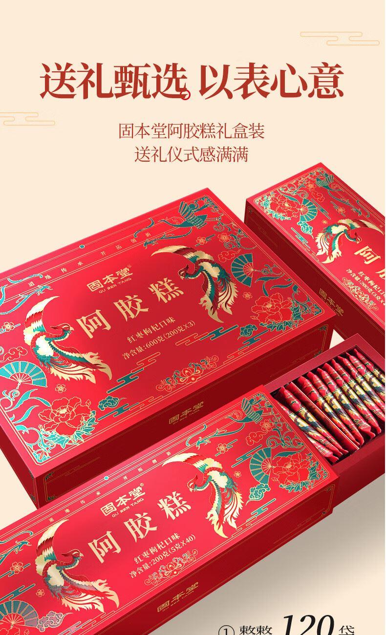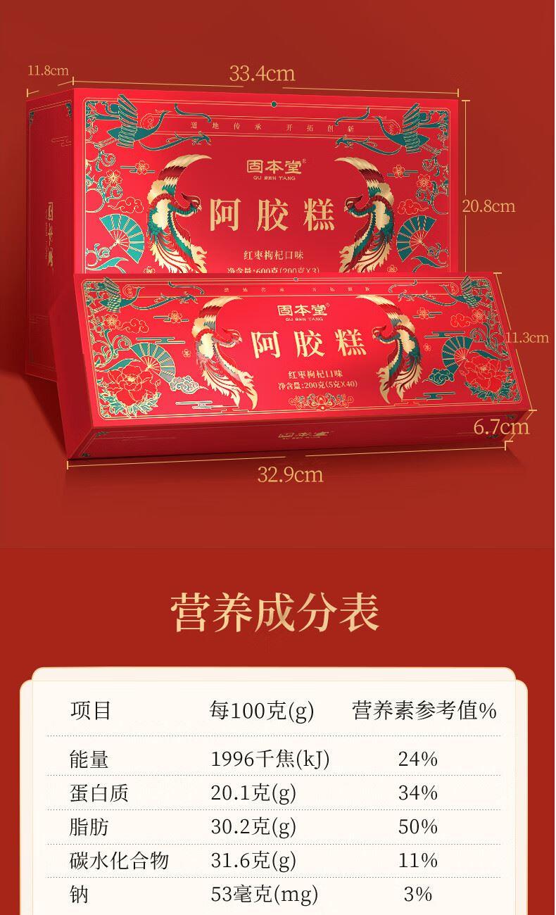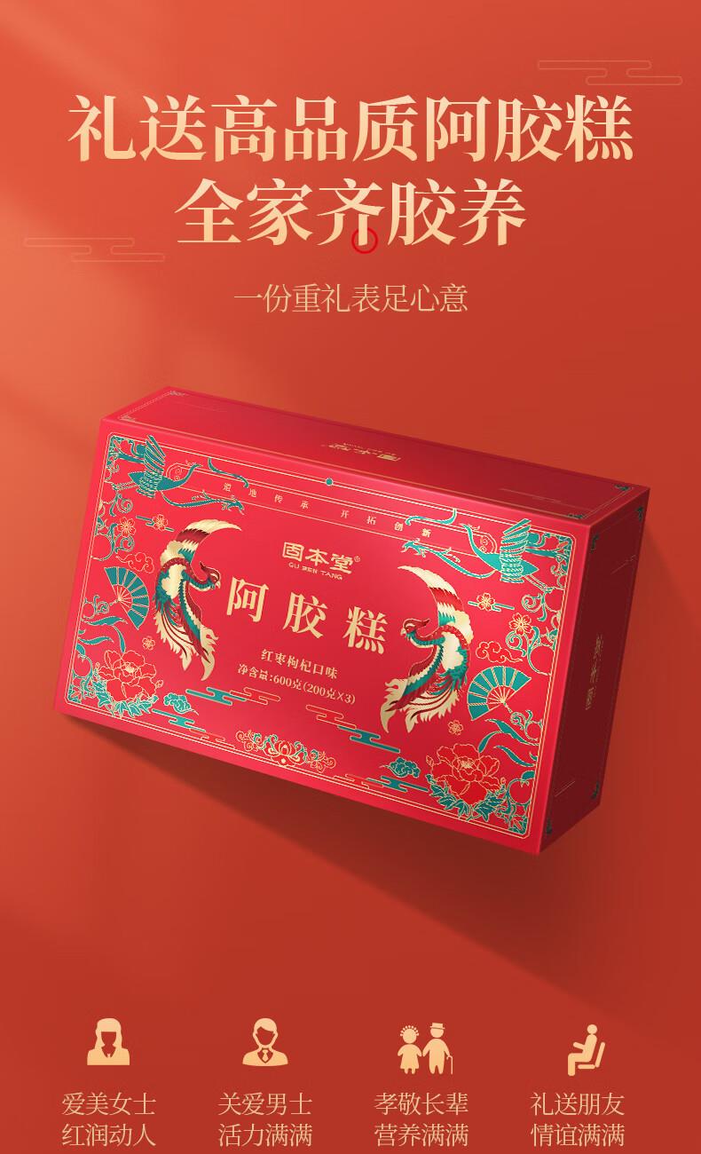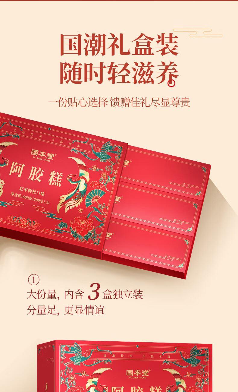 固本堂红枣枸杞阿胶糕600克礼盒(200克/盒*3)