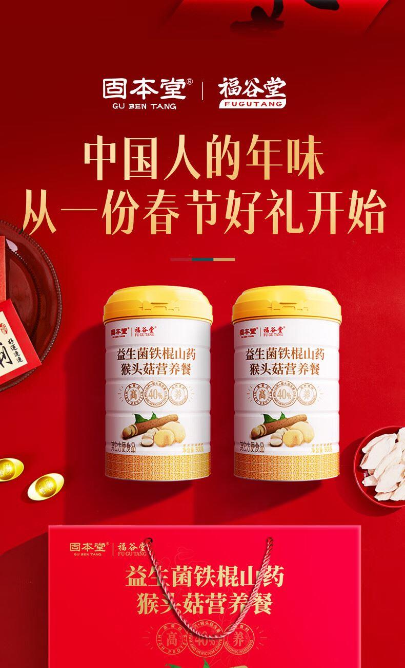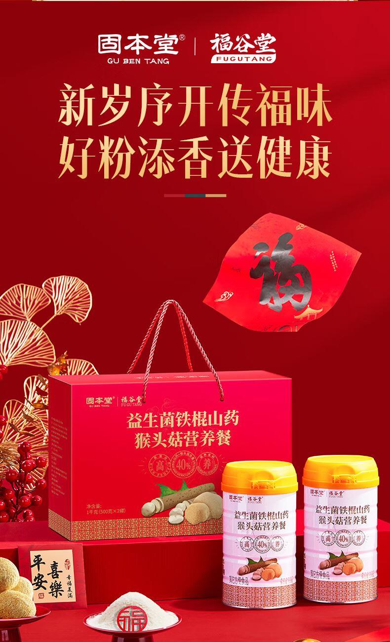 固本堂 益生菌铁棍山药猴头菇营养餐1000克礼盒装(500克*2) 6973700380922 1000克 1.61