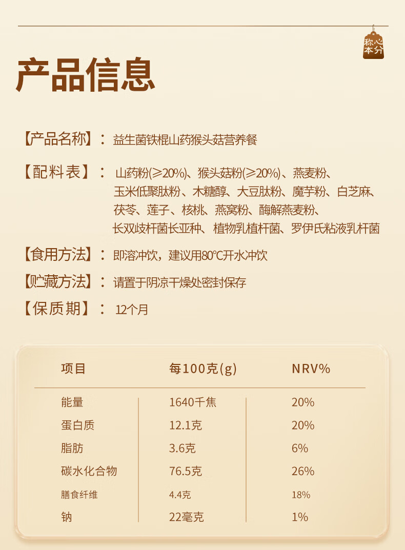 固本堂益生菌铁棍山药猴头菇营养餐1000克礼盒装